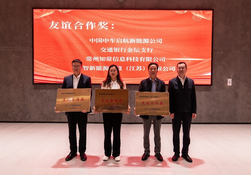 会议还颁发了betway88西汉姆联突出贡献奖和友谊合作奖。许波峰、钟淋涓、葛立超、张怿、郉子涵五位老师获得突出贡献一等奖,余颖、赵振宙、李清清、王丽琳、韩星星、刘惠文、王栋海、杨立娜八位老师获得突出贡献二等奖。中国中车启航新能源公司、荣智新能源科技有限公司、常州知常信息科技有限公司荣获友谊合作奖,陈达副董事长等为他们颁奖。