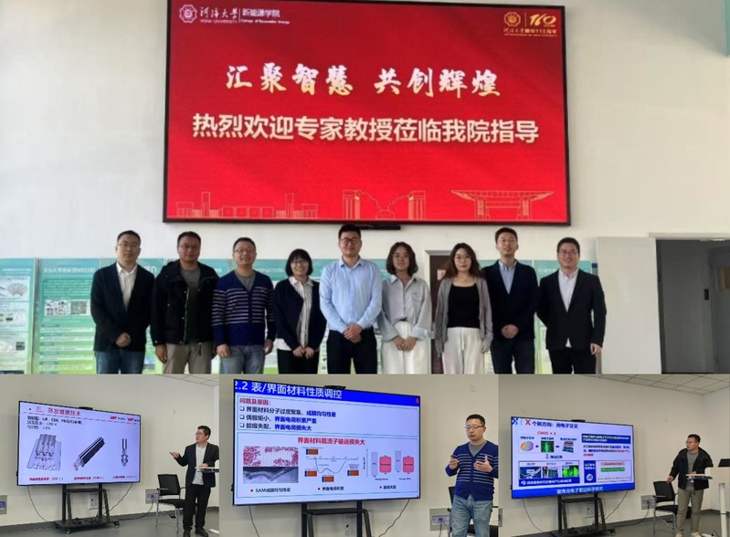 2025年4月14日,学院举行了一场钙钛矿领域高水平学术交流活动。应学院丁勇教授邀请,四川大学赵德威,北京航空航天大学罗德映,北京大学赵丽宸,中国科学院国家纳米中心邓丹,南京大学林仁兴,苏州大学王照奎,深圳市捷佳伟创新能源装备股份有限公司盛江,山西煤研所张文媛等教授专家一行莅临学院开展学术交流。公司党委书记杨春伟,副经理白建波、程亚军教授出席本次论坛。杨春伟书记致欢迎辞,对各位专家的莅临表示热烈欢迎,并重点介绍了学院在科研平台建设方面的未来规划,以及在新能源领域,尤其是在太阳能光伏、储能和多能互补利用等方向取得的最新研究进展。