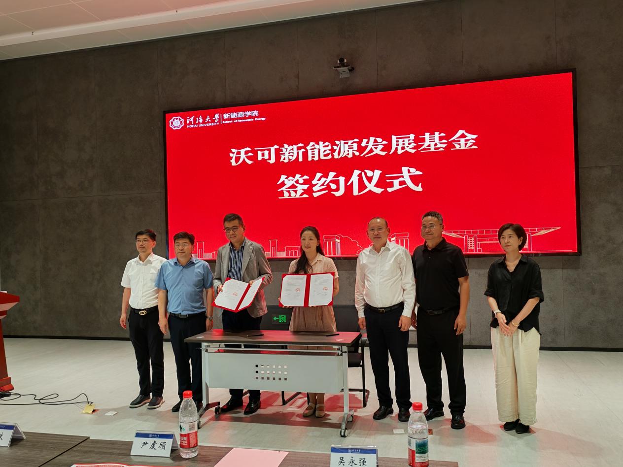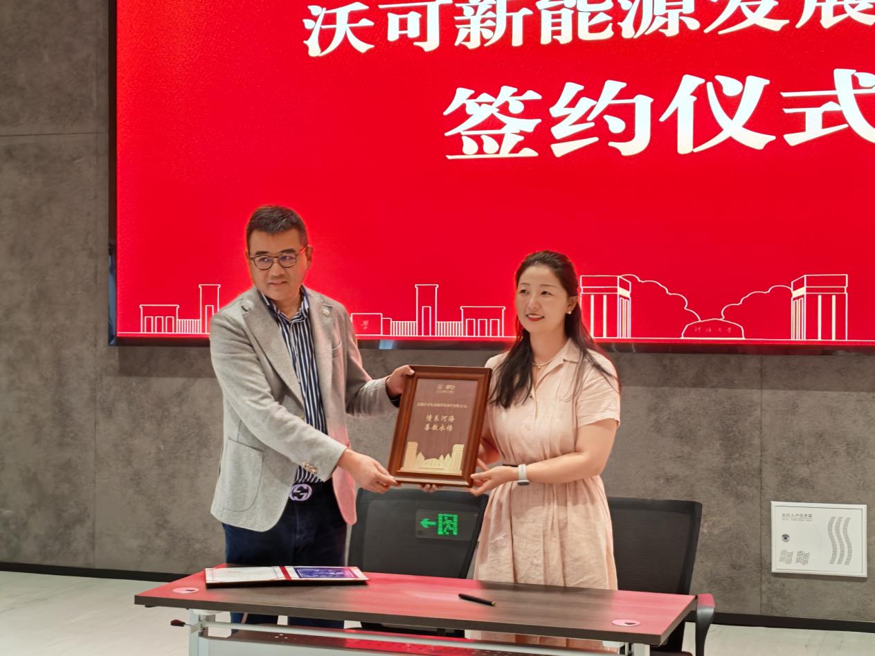 在沃可新能源基金签约环节,学校国内合作发展处副处长、基金办副主任李维与无锡沃可发动机降噪部件有限公司总经理包政共同签署沃可新能源基金捐赠协议。李维处长代表学校向包政总经理颁发了捐赠证书。