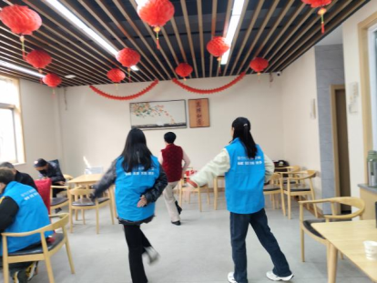上午,志愿者们达到养老中心,根据管理人员安排志愿者们被分配了不同的任务,有的和奶奶一同跳起广场舞,有的与爷爷们象棋对弈,有的帮助打扫卫生,忙碌而又充实,用自己的行动传递着温暖和关爱,让社区充满了和谐与欢乐。
