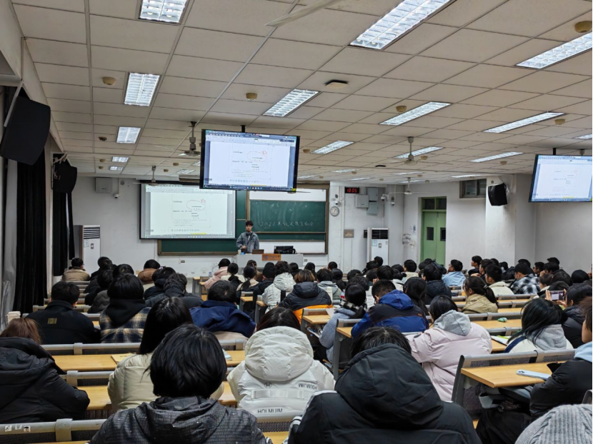 第三位分享的是马飞艳同学,马同学主要分享了她对于“源泉工程”的总结。她先是讲述了在源泉工程前期的准备,填写回访登记表、成员分工与当地的招生组联系与培训,特别说明了与高中负责人沟通方面的事宜,分发了广西地区的招生简章及报纸。然后向同学们说明了在宣讲过程中的重点,要细讲详讲ppt、介绍自己的专业、吸引同学的兴趣、回答同学们的疑问。在最后的分享中,她提及在“源泉工程”中所取得的宝贵经验,该过程培养了他们强烈的团队意识,增强了组员的沟通表达、策划协商、创新等能力。
